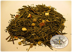 Зеленый чай сенча с добавлением листа китайского лимонника, японской липы, цедры лимона, цветками камелии, ароматизированный натуральными маслами.